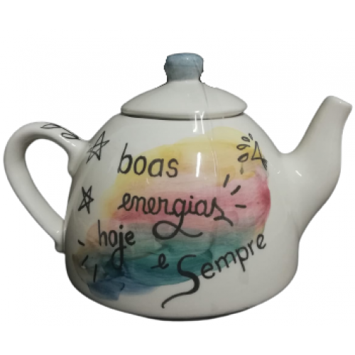 Bule decorado totalmente à mão com pintura artística, com influência "Tye Die".