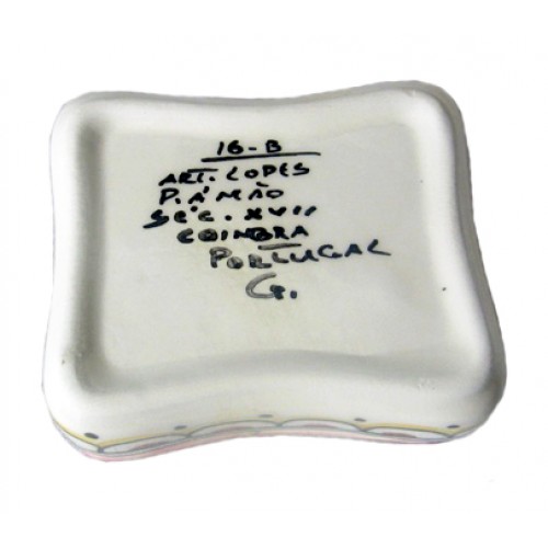 Caixa de joias quadrada pintada totalmente à mão com a pintura de Coimbra, século XVII a cores D..