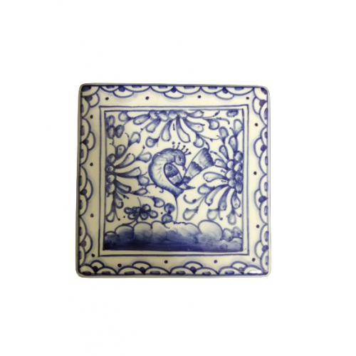Caixa de joias quadrada, decorada totalmente à mão com a decoração de Coimbra, século XVII a azul.