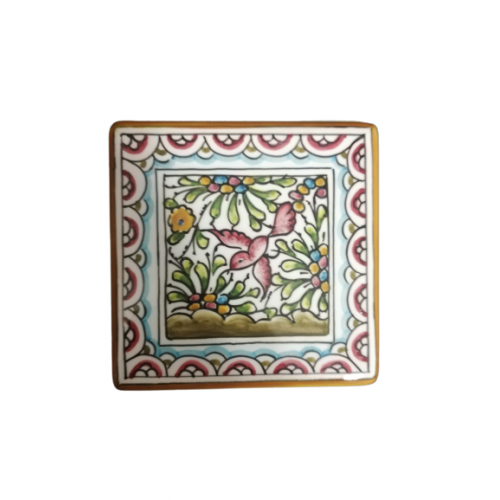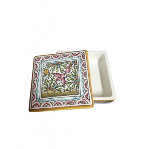 Caixa de joias quadrada pintada totalmente à mão com a decoração de Coimbra, século XVII a cores