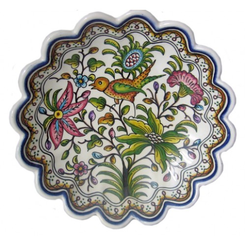 Saladeira ou taça redonda ondulada decorada totalmente à mão com a pintura de Coimbra, século XV &nb..