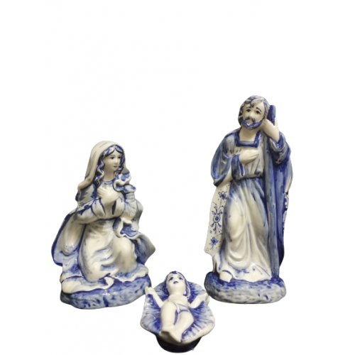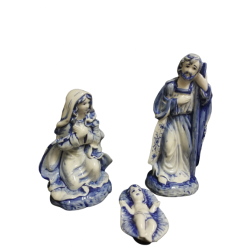 Presépio grande composto por 3 peças individuais pintado à mão com pintura de Coimbra, século XVII a azul.
