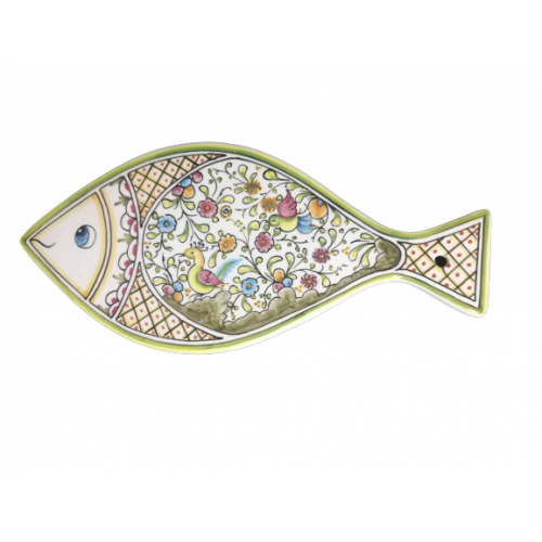 Base peixe decorada totalmente à mão com a pintura de Coimbra, século XVII a cores.