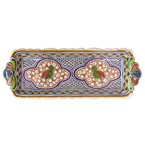 Tabuleiro com asa aberta, decorado totalmente à mão com a pintura de Coimbra, reprodução do século X..