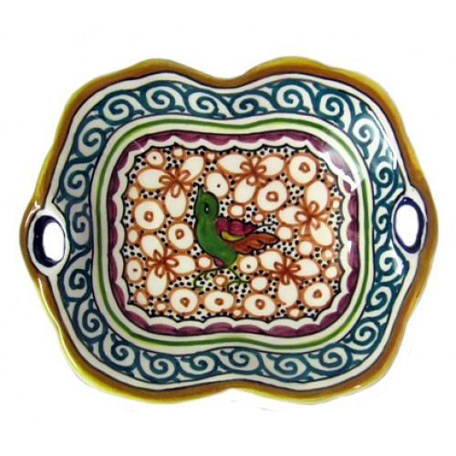 Travessa pequena com asas decorada totalmente à mão com a pintura de Coimbra, século XV