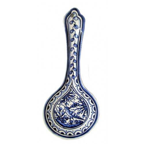 Porta colheres decorada totalmente à mão com a pintura de Coimbra, século XVII em azul cobalto