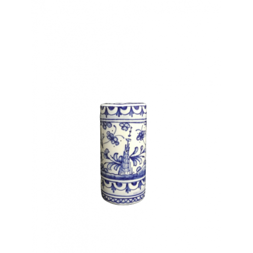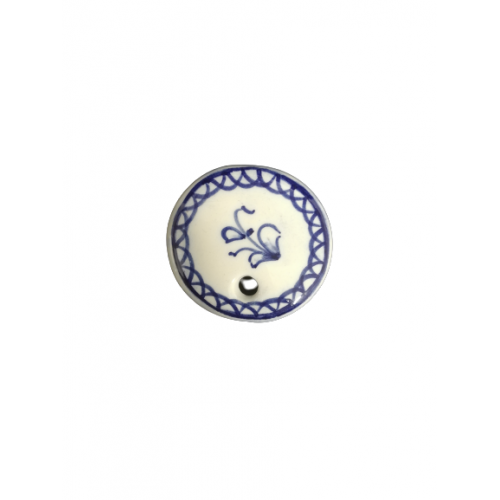 Paliteiro redondo decorado totalmente à mão com a pintura de Coimbra, século XVII a azul.