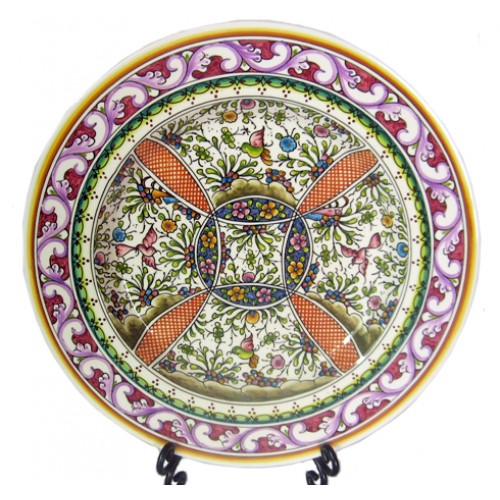 Prato decorado à mão com a pintura de Coimbra, século XVII a cores